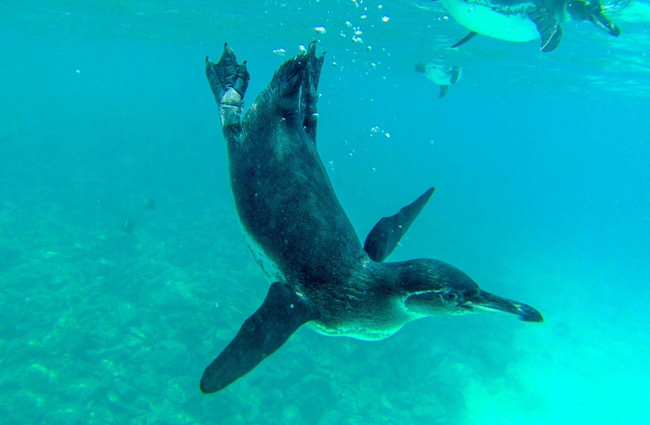 Though considered flightless birds, they seem to fly through the water as they spin and bolt while hunting fish.